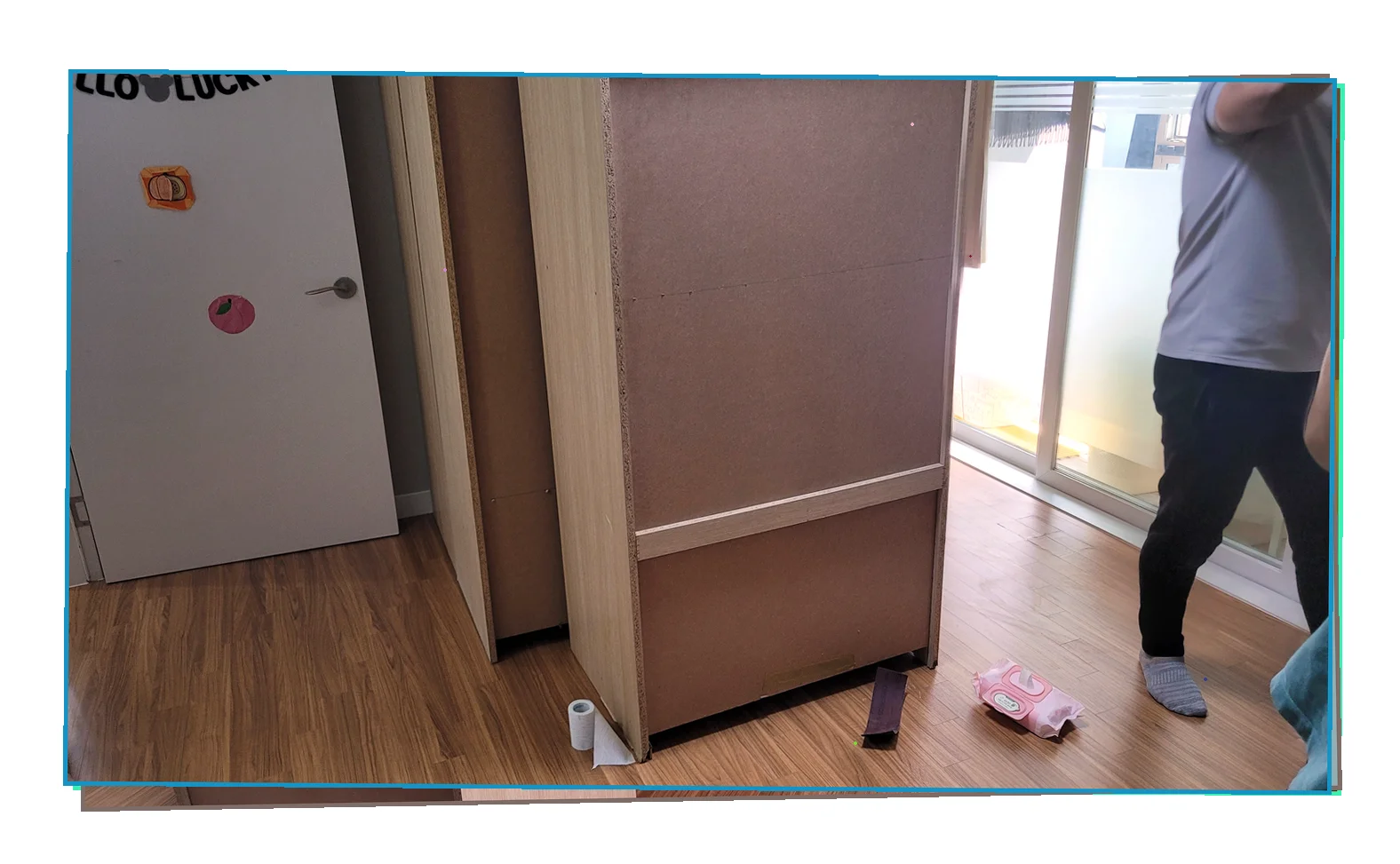 마감재 표면이 축축하게 젖어있는 상태로